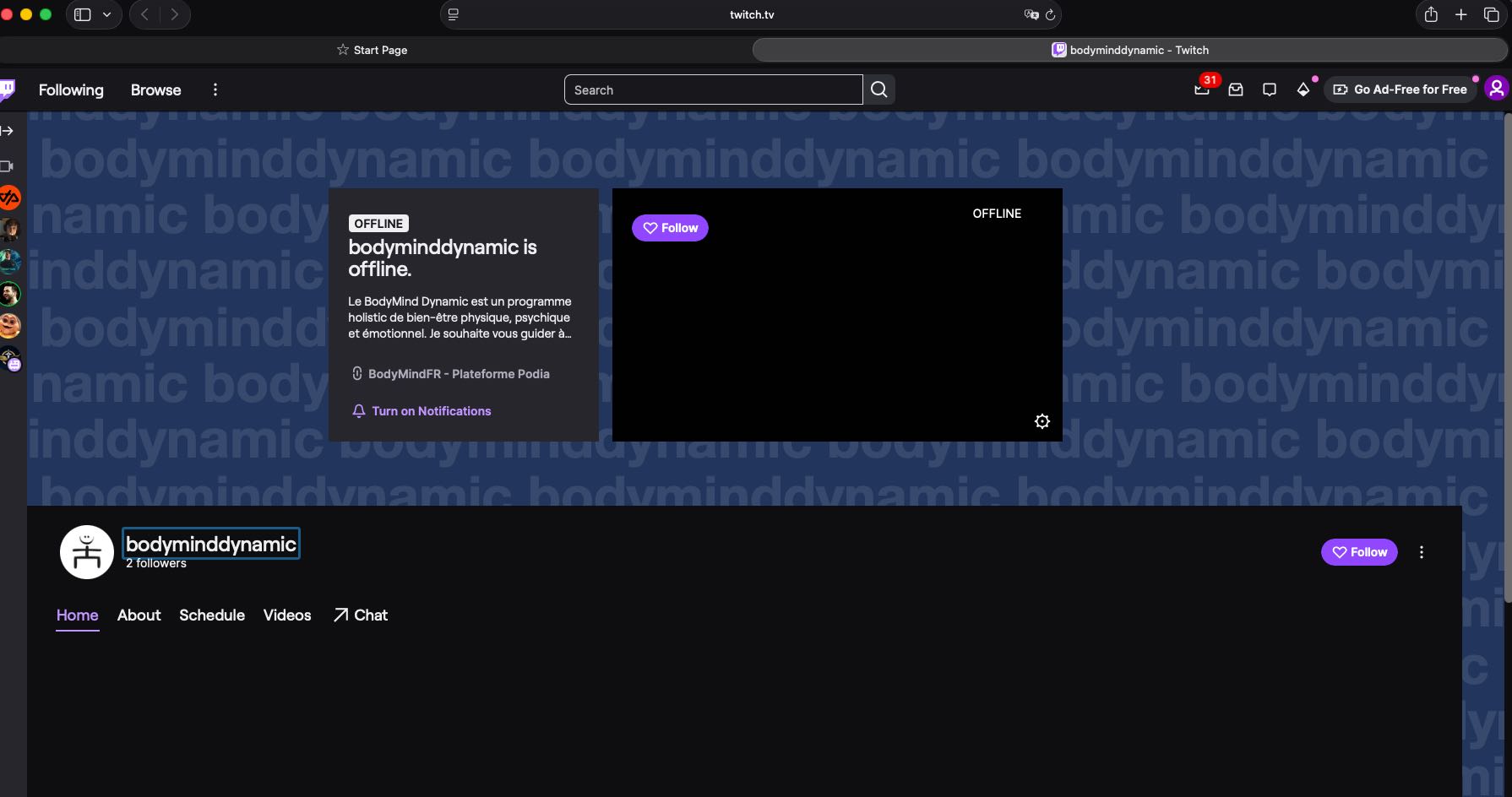 Vous pouvez parcourir les choix à gauche, et cliquer "follow" pour suivre mes contenus et être informé du démarrage d'un nouveau livestream.